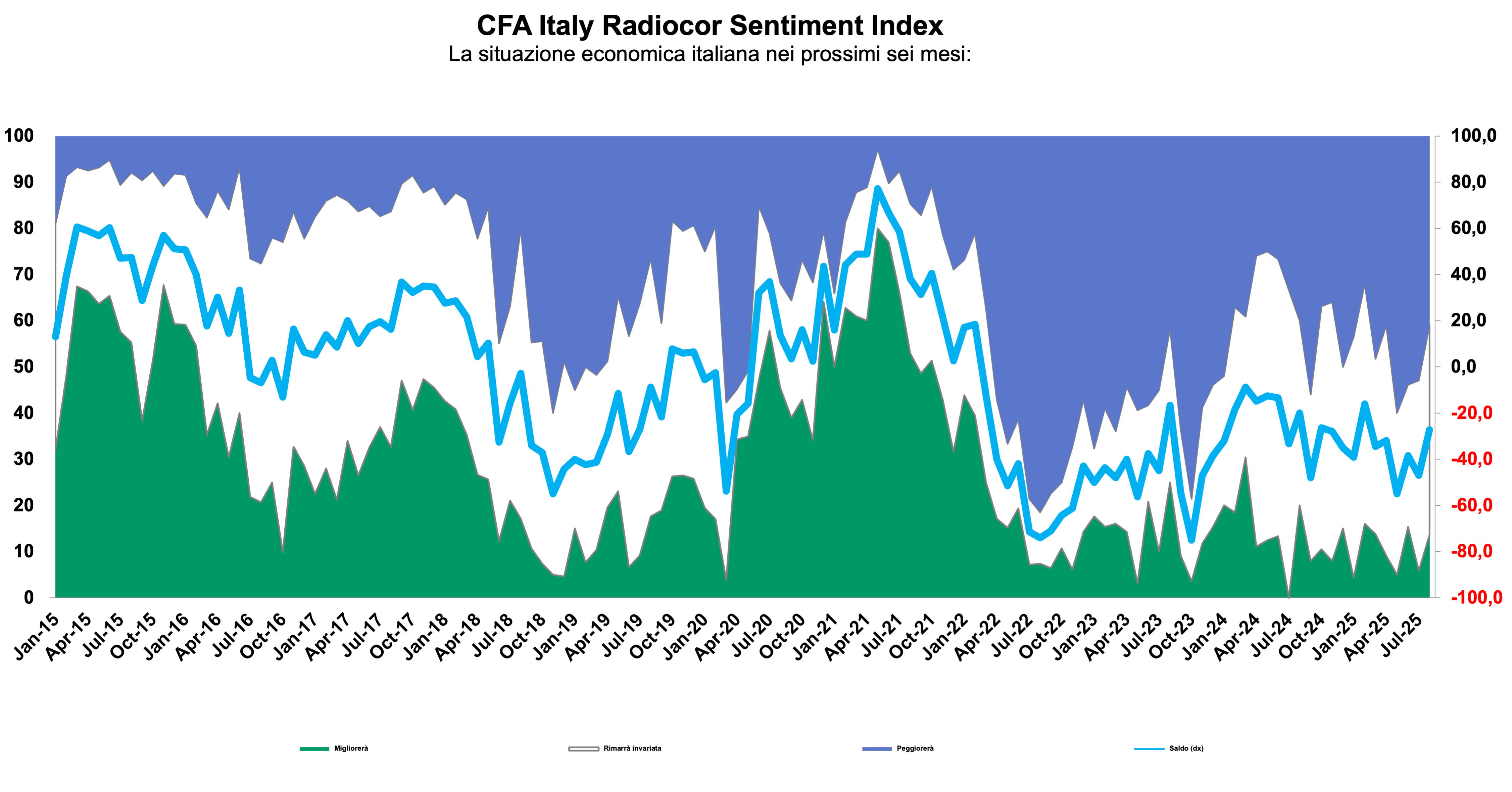 The monthly “CFA Society Italy – Radiocor Financial Business Survey & Sentiment Index” is the result of interviews to Italian financial professionals who are members of CFA Society Italy.