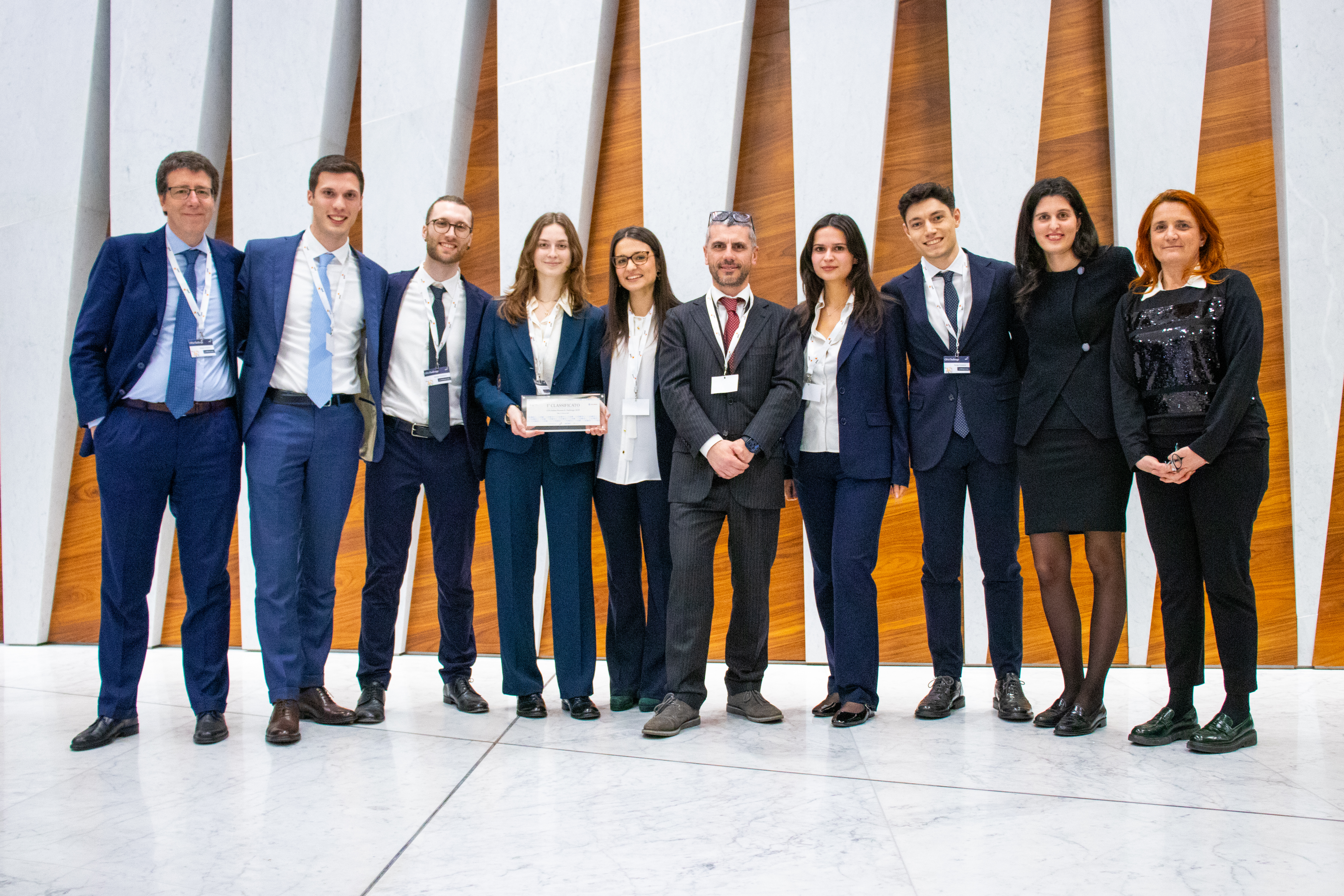 The winning team, composed of Elena Mascolo, Eleonora Mercurio, Lorenzo Pelizza, Matteo Pasini, and Anna Tognotti, under the mentorship of Giovanni Righi, secured first place nationally with their financial analysis on De Nora, an Italian multinational listed on the Euronext Milan stock exchange, a leader in the electrochemical sector and sustainable technologies, playing a key role in the green hydrogen supply chain, committed to developing innovative solutions to support energy transition and environmental sustainability.